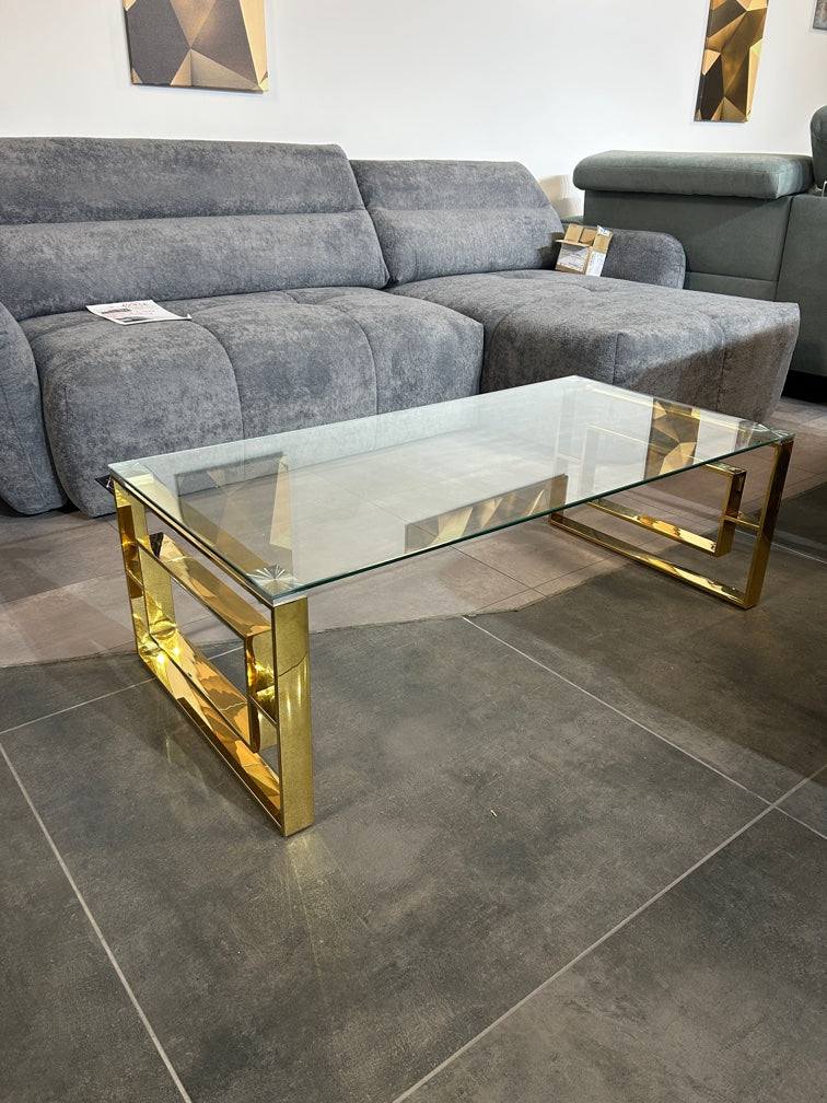 Moderner Couchtisch – Glasplatte & Gold-Metallgestell