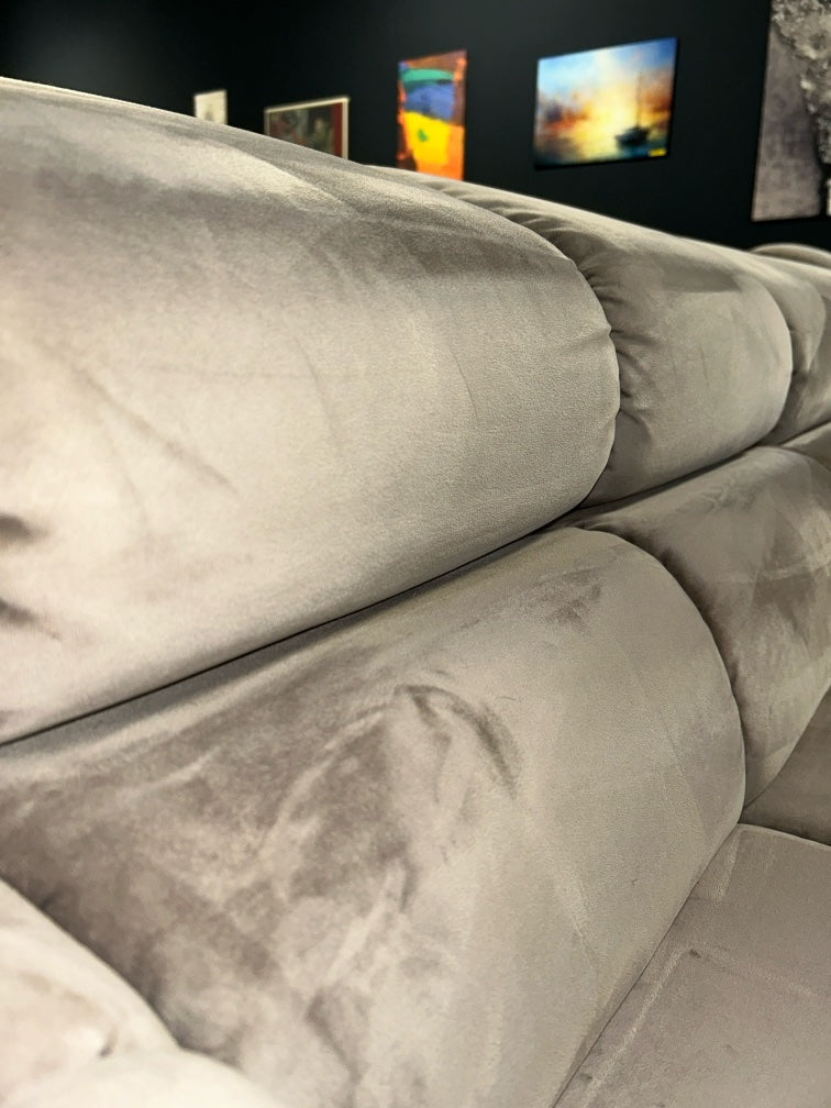 ☁️ Bezug: Edler Samt in Grau-Braun (Taupe) – schimmert luxuriös, ist extrem weich und absolut zeitlos