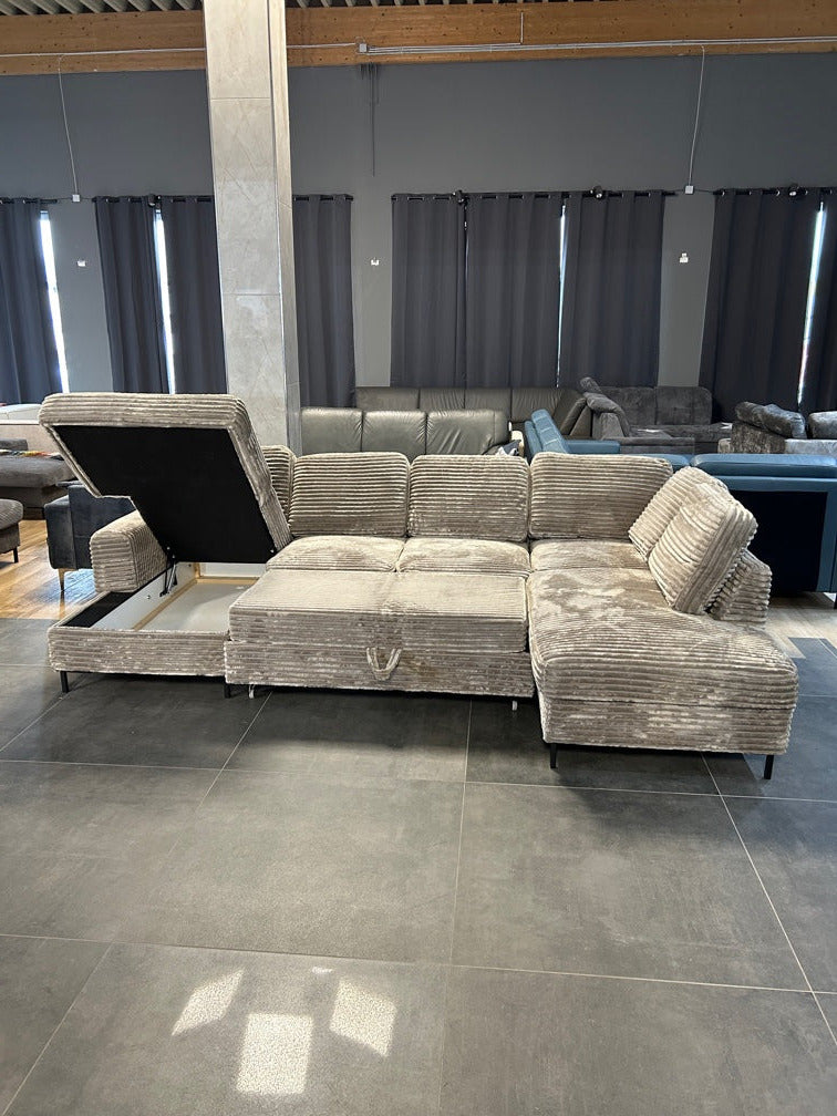 U-Form mit Bett und Bettkasten, XXL Cord